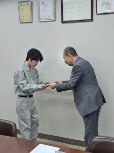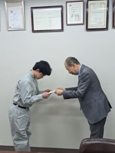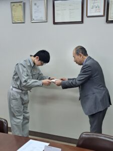 当日は、社長より一人ひとりに辞令が交付され、社会人としての第一歩を踏み出しました。